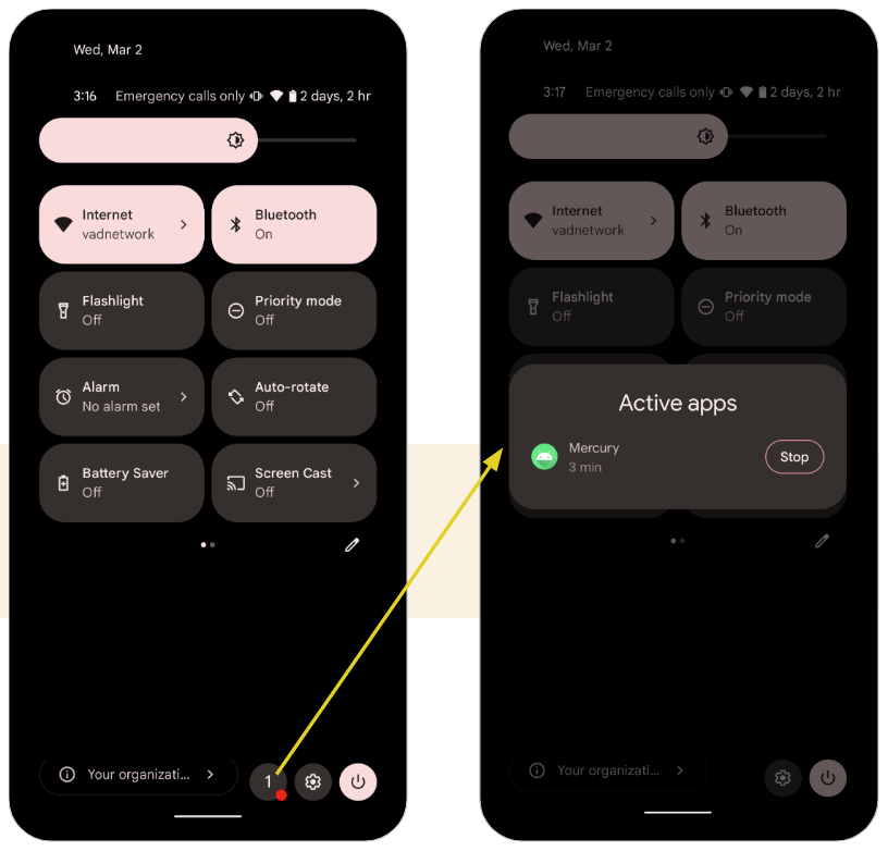 Android 13(API 33)에서는 타겟 SDK 버전과 관계없이 사용자가 "알림 창"에서 "포그라운드 서비스"를 중지할 수 있다.