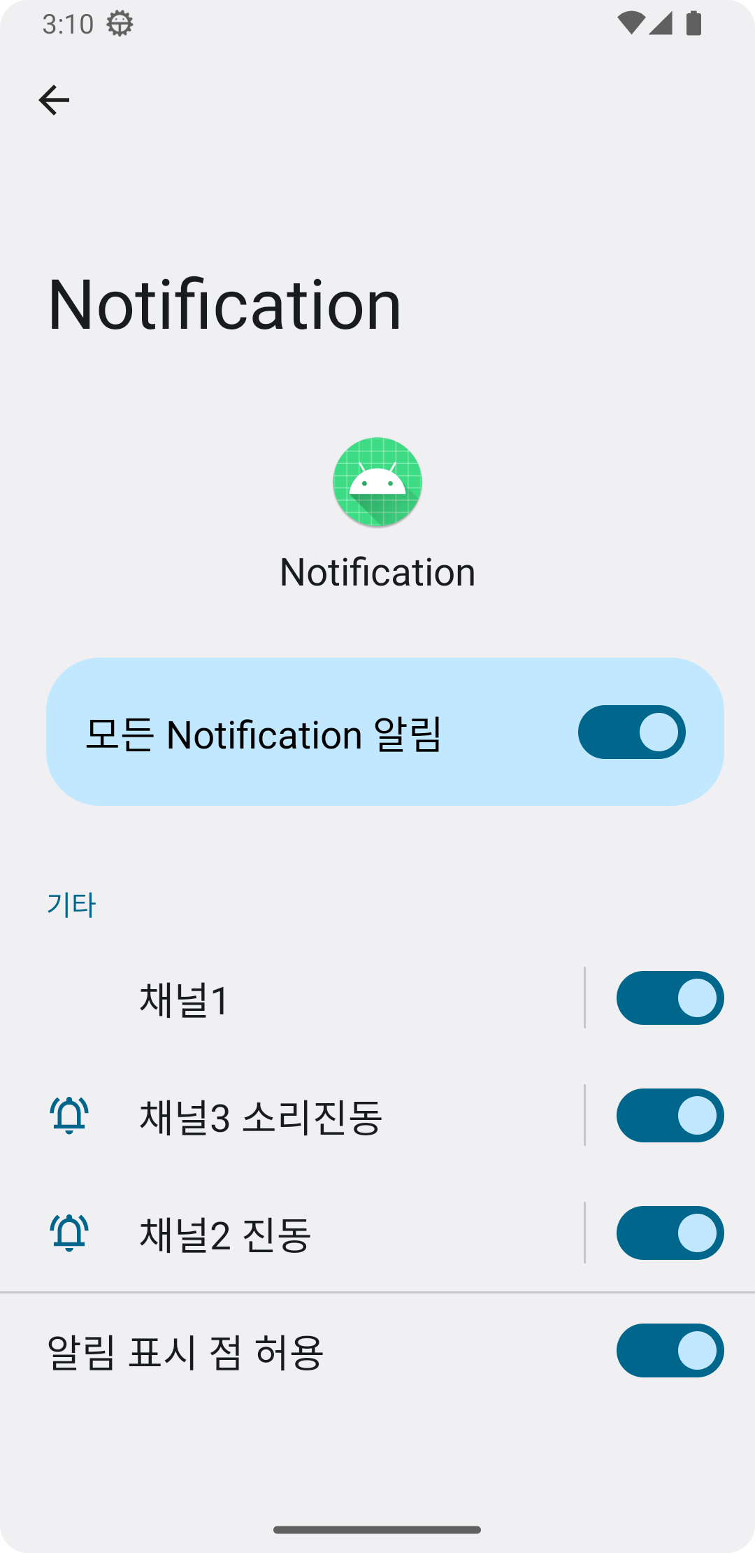 앱의 환경설정에서 Notification의 ON/OFF를 설정할 수 있는데, 이때 사용되는 개념이 바로 '채널'이다.