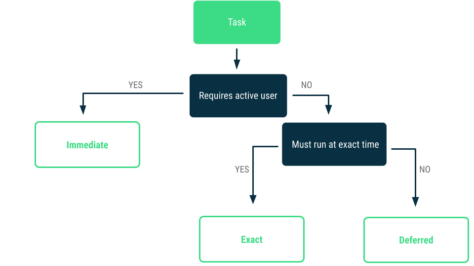 Background 작업으로 AlarmManager나 WorkManager, Coroutine을 사용할 수 있는데 공식 문서를 보면 사용 구분에 따라 어떠한 기술을 사용해야 할지 가이드라인을 제공하고 있다.