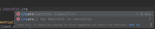 Retrofit.create 함수의 매개변수를 보면 Class<T!> 라는 Java Class를 받는다.