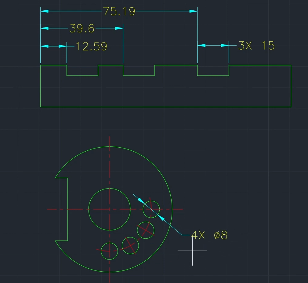 | F | 치수선과 나란히 있어서 반대편 면까지 잡아서 그 중심면을 찾아냄 |