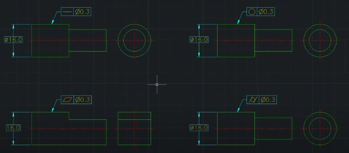 모두 모양공차로 데이텀 참조 안 하며 Ø기호 역시 사용하지 않는다. (예시 1 에만 해당)