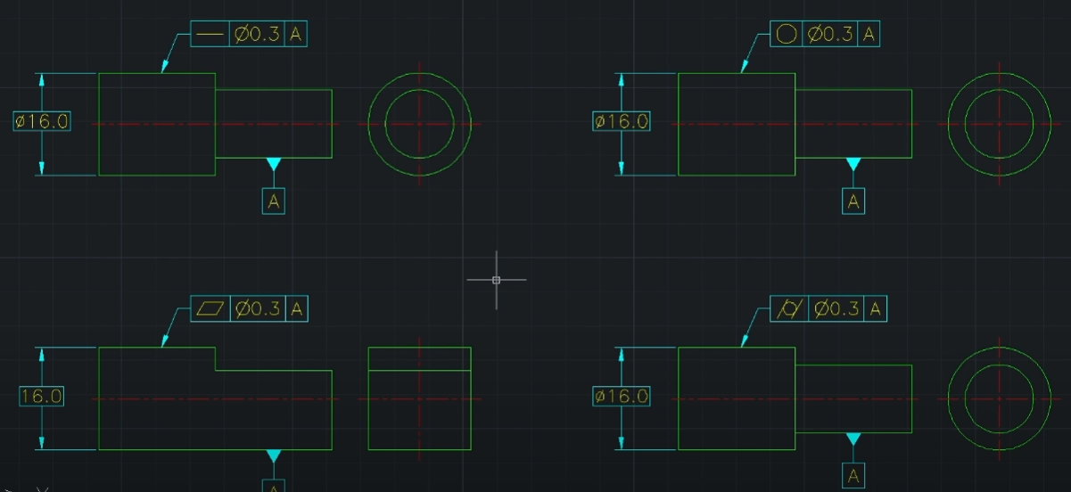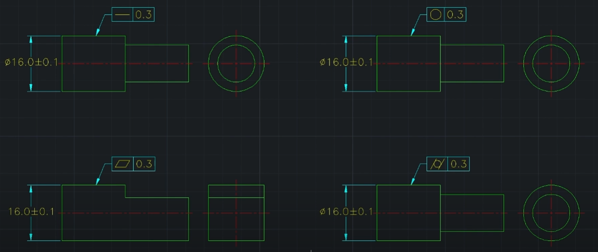 모두 같은 투상이지만 정면도 우측면도에 따라 진직도의 길이가 다르게 설정되어 있다.