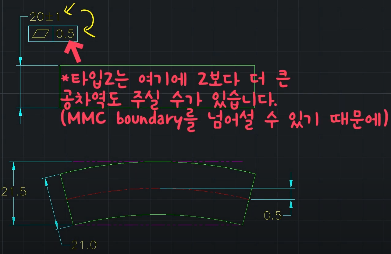 - 타입 2는 제품의 형상이 MMC boundary 밖으로 나갈 수 있다.