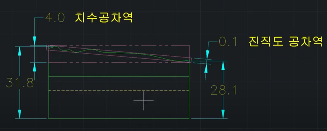 진직도 역시 진원도처럼 무조건 사이즈 공차의 폭보다 진직도 공차의 폭이 더 작아야 의미가 있다.