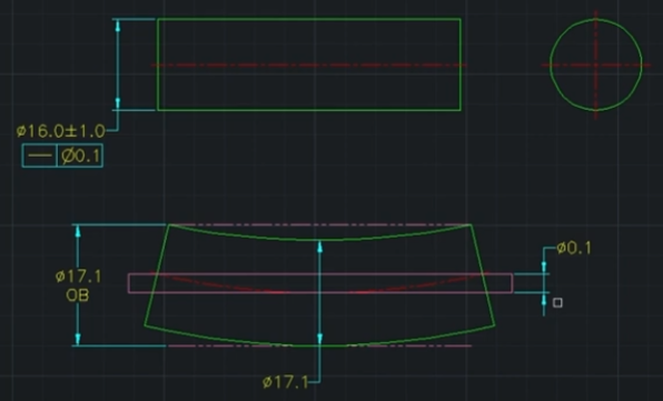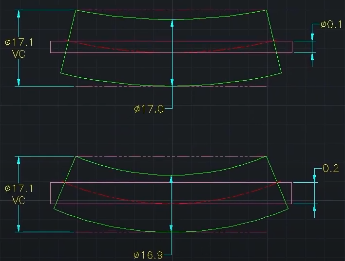예시 1의 치수공차의 15.99 ~ 16.01 직경 범위보다