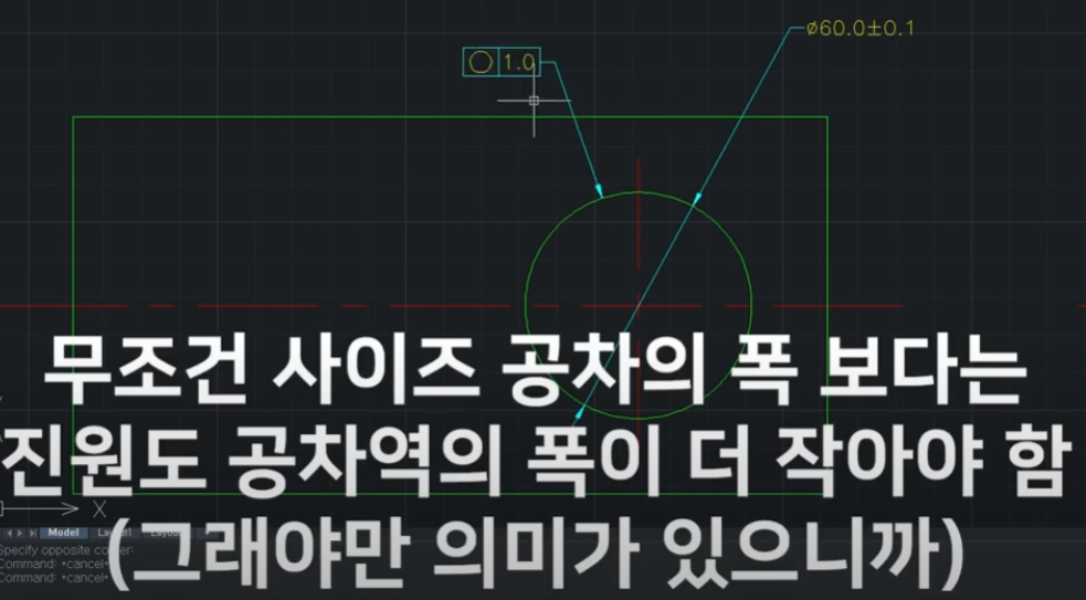 그렇기 때문에 무조건 사이즈 공차보다 진원도 공차의 폭이 작아야 한다.
