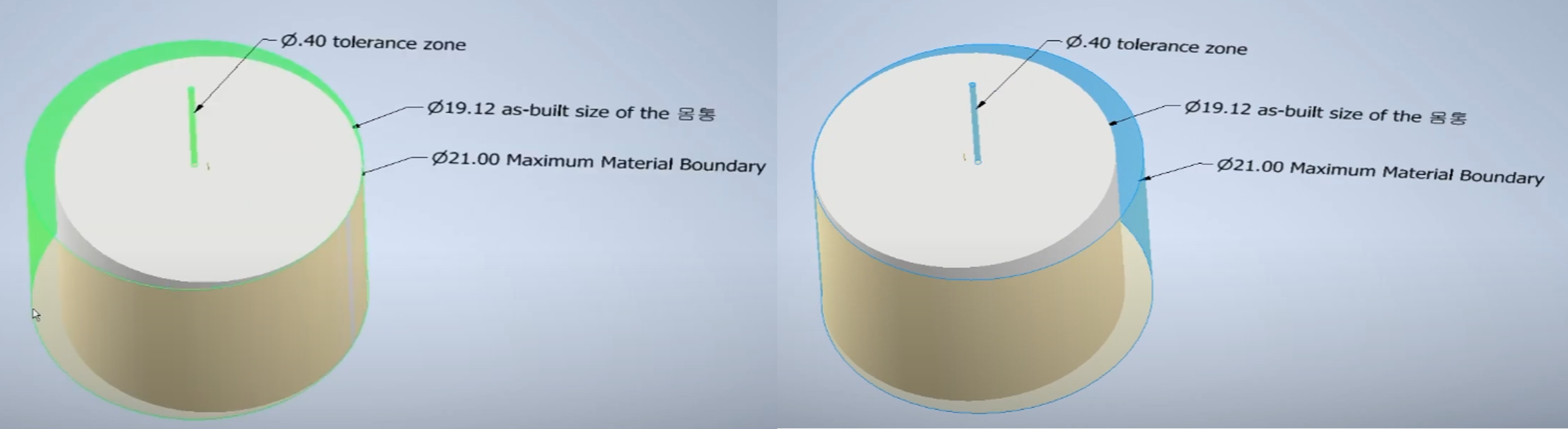 MMB 바운더리의 중심축을 데이텀으로 삼아 MMB를 이동시켜도 공차역의 크기는 일정한 상태