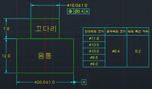 - 꼬다리의 크기와 관계없이 공차역의 크기는 항상 0.4 파이이다.