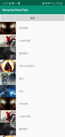 ItemAnimator 클래스는 어댑터가 변경될 때 항목에서 발생하는 애니메이션을 정의 아이템 뷰 항목이 추가, 제거되거나 정렬될 때 애니메이션 처리