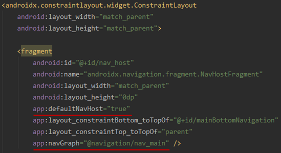 app:defaultNavHost 속성의 경우 System의 back button 이벤트를 가져와 처리 가능하게 한다.