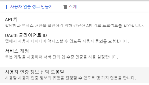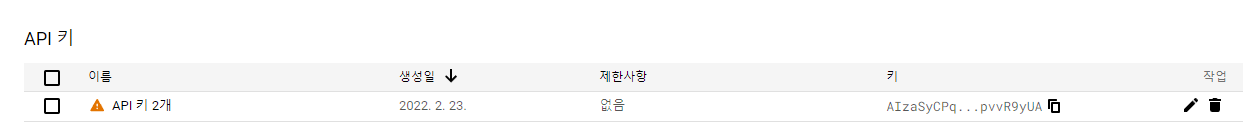 만들어진 API key를 클릭해 사용자 인증정보로 이동
