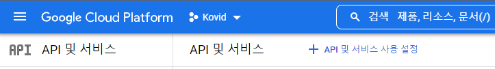왼쪽 상단 메뉴 아이콘 클릭 후 API 및 서비스 사용자 인증 정보 클릭